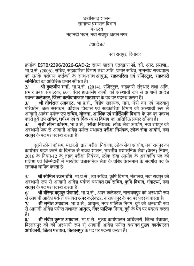 रायपुर। छत्तीसगढ़ सरकार ने आईएएस अधिकारियों का तबादला किया है। इस सम्बंध में आदेश जारी कर दिया गया है।