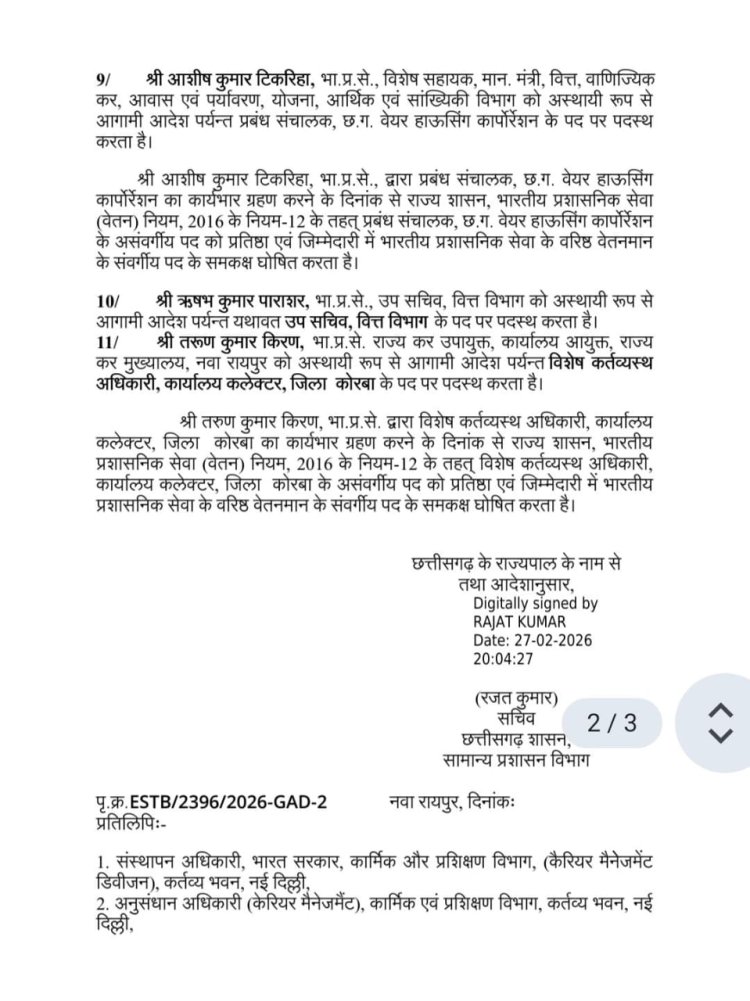 IAS Transfer :कलेक्टर सहित 11 आईएएस अधिकारियों का तबादला,देखिए लिस्ट