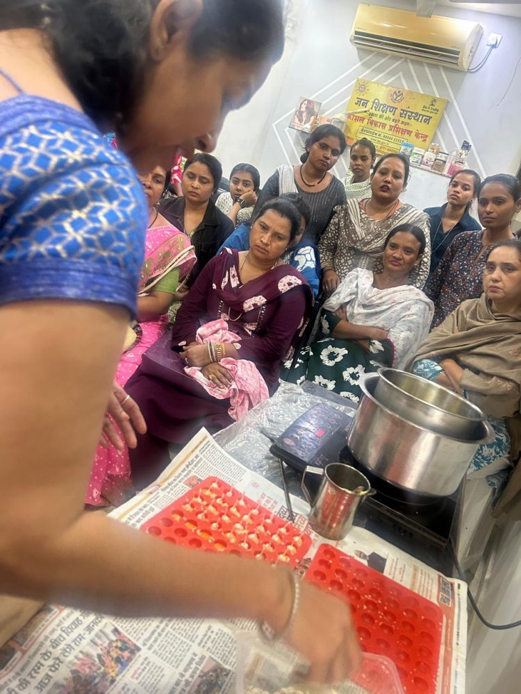 श्याम नगर स्लम क्षेत्र में दिया गया दिया-मोमबत्ती निर्माण का प्रशिक्षण