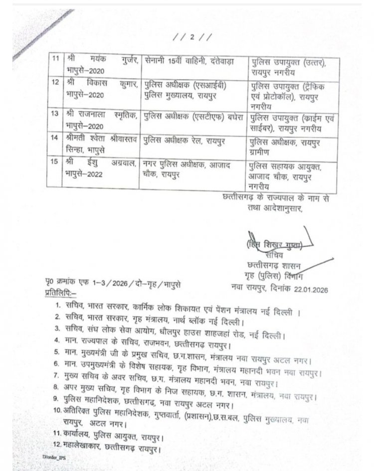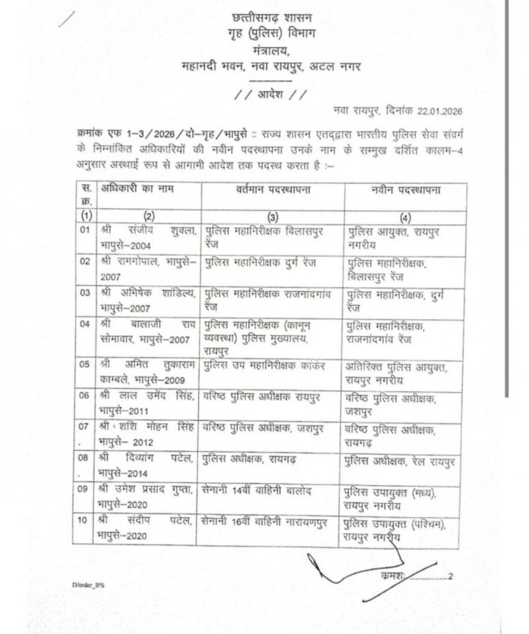 Transfer Breaking : छत्तीसगढ़ सरकार ने किया आईपीएस अफसरों का तबादला,आदेश जारी