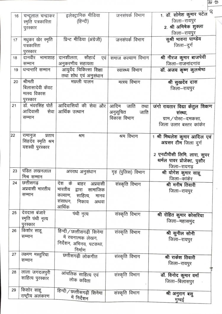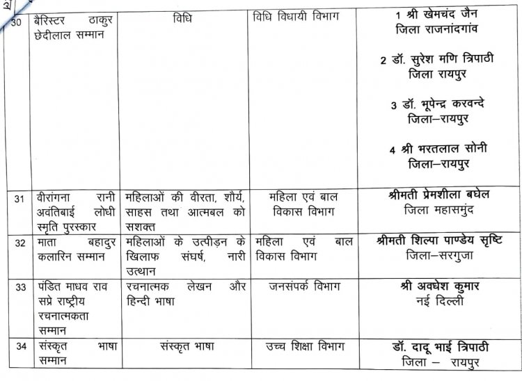 मंत्री राजेश अग्रवाल ने की राज्य अलंकरण सम्मान की घोषणा,देखिए लिस्ट