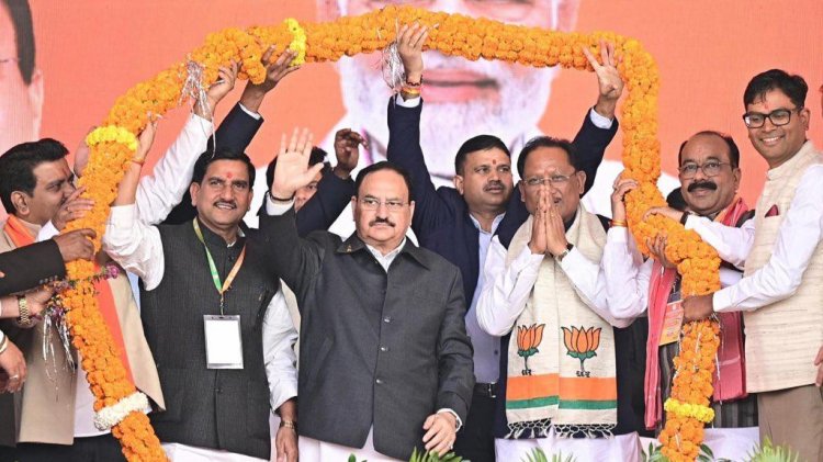 रायपुर। मुख्यमंत्री विष्णुदेव साय के नेतृत्व में छत्तीसगढ़ सरकार के सफल दो वर्ष पूर्ण होने के उपलक्ष्य में जांजगीर-चांपा जिले के खोखराभाठा पुलिस लाइन मैदान में आयोजित जनादेश परब में केंद्रीय स्वास्थ्य एवं परिवार कल्याण मंत्री जगत प्रकाश नड्डा ने मंच से प्रदेश की उपलब्धियों, जनकल्याण और भविष्य की दिशा पर स्पष्ट संदेश दिया। वंदे मातरम और राज्यगीत के साथ आरंभ हुए कार्यक्रम में जनविश्वास, गौरव और निर्माण के संकल्प को दोहराया गया।