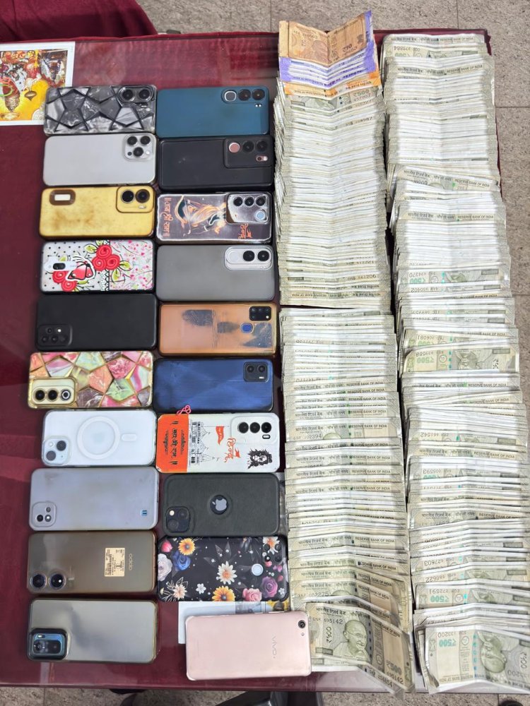 पुलिस ने मौके से 52 पत्ती ताश, 2,52,520 रुपए नगद और अलग-अलग कंपनियों के 20 मोबाइल फोन (करीब 2.50 लाख रुपए कीमत) जब्त किए। कुल जब्ती 5,02,520 रुपए आंकी गई है।