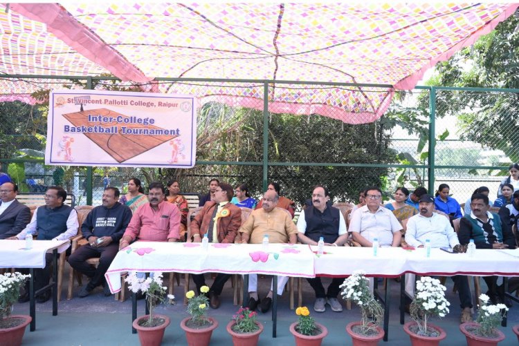 रायपुर। St. Vincent Pallotti College, रायपुर में आयोजित Inter-College Basketball Tournament का शुभारंभ आज पूरे जोश, उत्साह और खेल भावना के साथ संपन्न हुआ। उत्तर विधानसभा क्षेत्र के लोकप्रिय विधायक पुरंदर मिश्रा मुख्य अतिथि के रूप में कार्यक्रम में शामिल हुए तथा बास्केटबॉल रिंग में प्रथम शॉट लगाकर खेल महोत्सव का औपचारिक उद्घाटन किया।