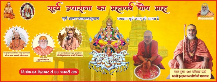 यतिप्रवर दांडी स्वामी इंदुभवानंद तीर्थ महाराज के पावन सानिध्य में पौष मास में भगवान सूर्य की उपासना पर्व प्रारंभ हुआ है। पौष मास में भगवान सूर्य की उपासना की जाती है। उन्होंने शभक्तों से भगवान सूर्य की उपासना के लिए प्रतिदिन सुबह 11:30 से 12:30 उपस्थित होने का आग्रह किया है।